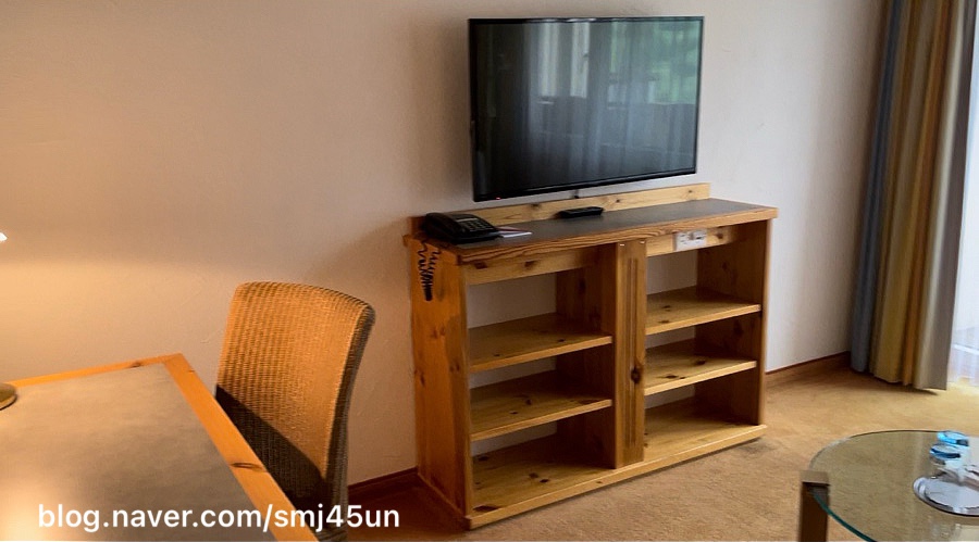 객실 내부는 스위스 전통 스타일의 우드로 인테리어를 해서 따뜻한 분위기를 느낄 수 있었고, 거실과 침실, 욕실과 화장실이 있었어요